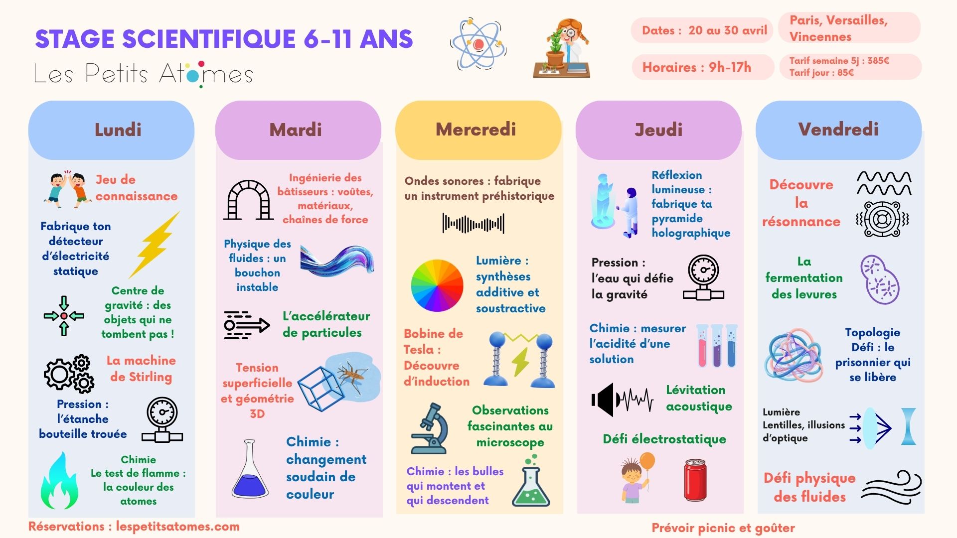 Voici le programme du stage des vacances d’avril 2026 (le programme estival sera posté en mai) :