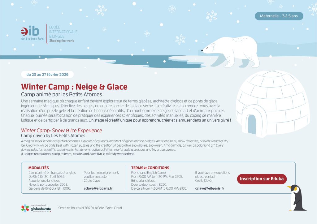 Les Petits Atomes et l’EIB Jonchère proposent un stage en partenariat lors des vacances de février 2026.